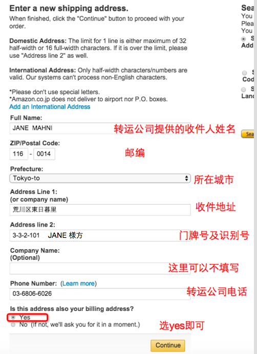 进入转运公司地址的填写,只要按照转运公司提供的资料填写即可,日亚购买还是很方便的,不需要片假名。