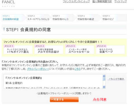 2、注册:点击左上角的新规会员登录开始注册,一共5个步骤如下: