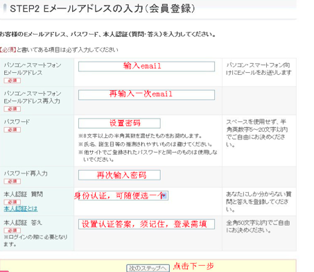 第二步,设置邮箱、密码、身份认证等,注意要记住设置的身份认证答案,登录的时候需要填