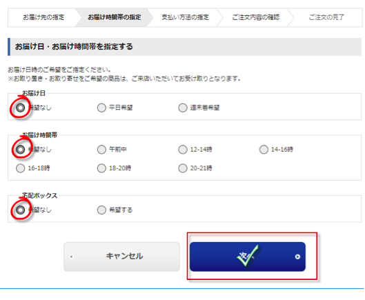 指定送货日期可以默认所有选项,点击蓝色按钮继续